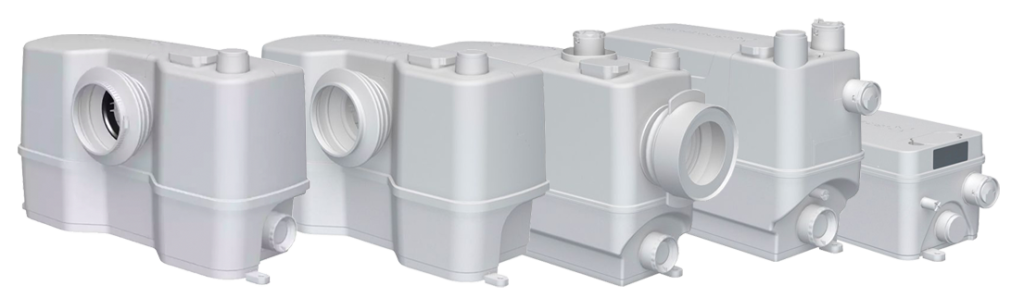 A SOLOLIFT2 WC-3 egy kompakt automata átemelő állomás 2 további bemeneti csatlakozással, amelyek alkalmasak mosdókagylóból, zuhanytálcából és WC-ből származó szennyvíz szivattyúzására.